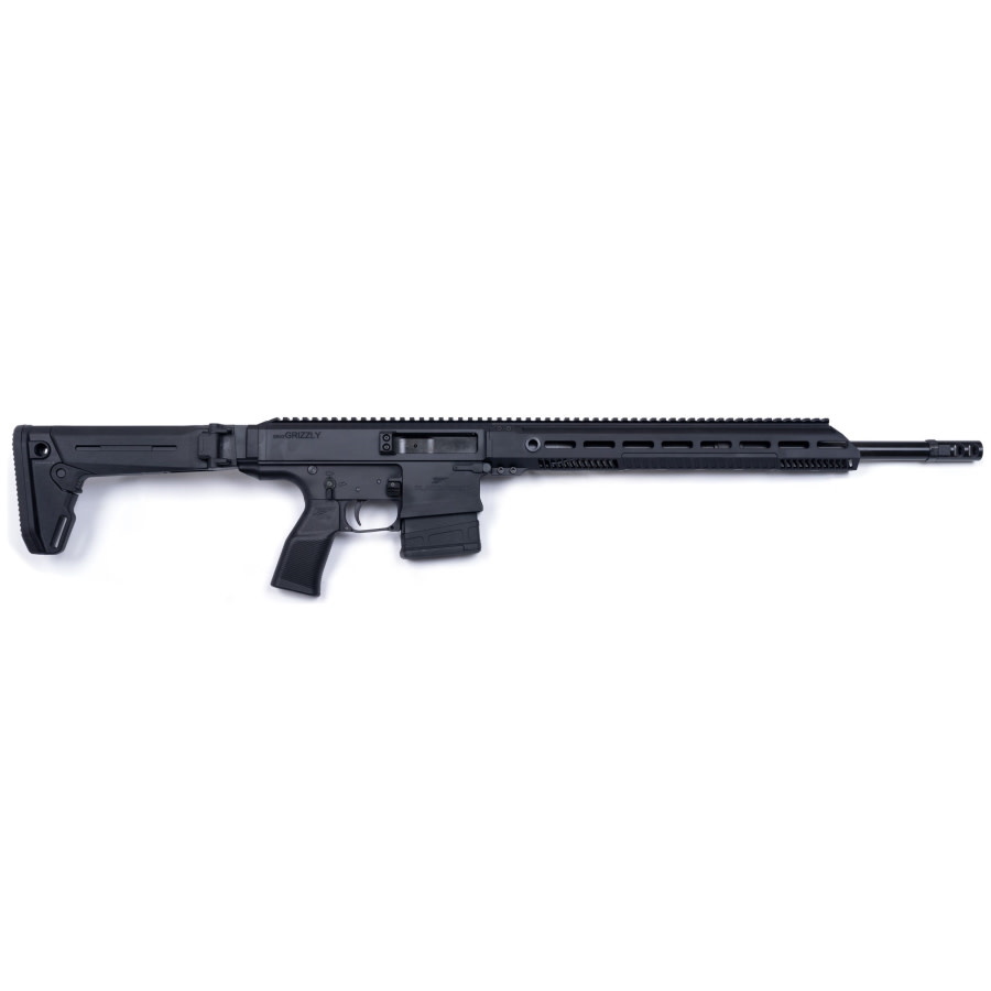 User controls are similar to an AR10 and the rifle is fed by a factory-limited AR10 magazine. The Grizzly ships with a Magpul Zhukov stock, however the stock mounting point on the lower receiver is a universal 1913 pic rail, allowing for nearly unlimited aftermarket stock options.