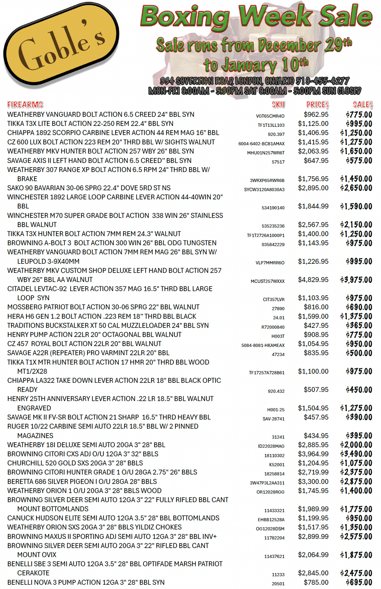 Get ready for Goble’s Boxing Week Sale! Great deals on a wide selection of firearms, ammunition, and optics!