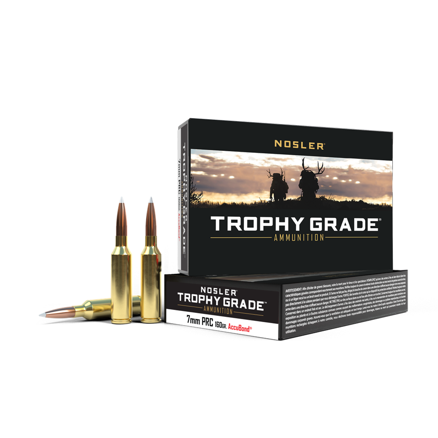 Nosler Trophy Grade™ ammunition is loaded with Nosler AccuBond® bullets. The AccuBond®’s unique white polymer tip assures accuracy and smooth chambering, while the boat-tail base at the rear of the bullet acts as a platform for large-diameter mushrooms. Designed for accuracy near or far, Nosler’s Trophy Grade™ ammunition provides undeniable reliability.