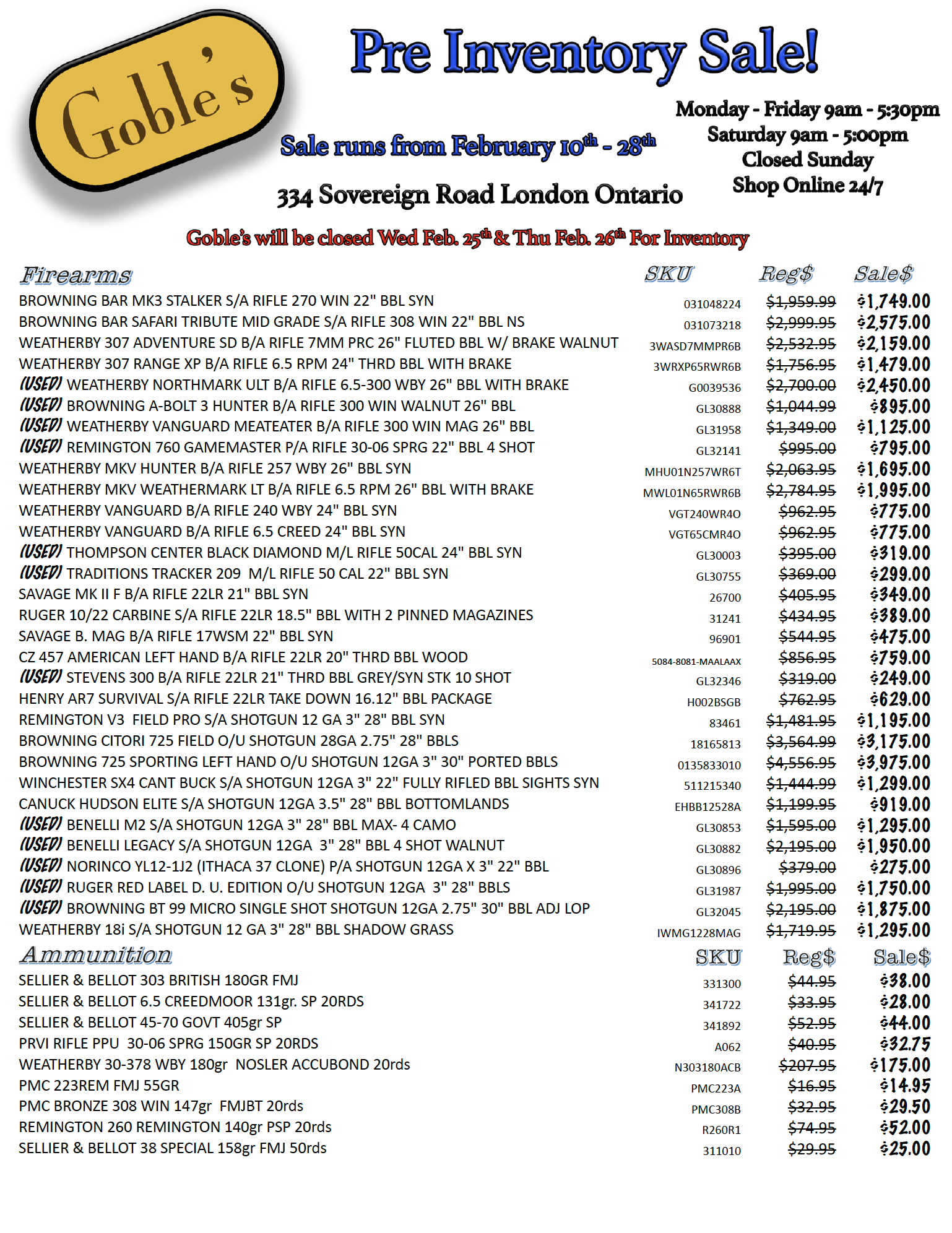 Unlock incredible savings at Goble’s Firearms Pre Inventory Sale! Discover unbeatable deals on firearms, ammunition, storage items, optics, and hunting gear. Gear up for your next adventure with top-quality products at amazing prices.